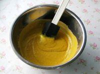 8.把搅拌好的芒果泥倒进熬好的蛋黄液中